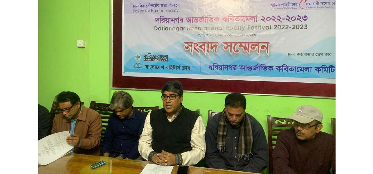 প্রেস বিজ্ঞপ্তি: কক্সবাজারে ৩ দিনব্যাপী দরিয়ানগর আন্তর্জাতিক কবিতা মেলা ২০২২ শুক্রবার (৩০ ডিসেম্বর) থেকে শুরু হচ্ছে। প্রতিবারের মতো “মানবিক সৌন্দর্যের জন্য কবিতা” প্রতিপাদ্যে এবারের শ্লোগান নির্ধারণ করা হয়েছে “শান্তির পৃথিবীর